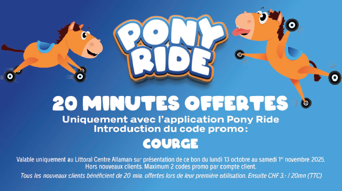 Profite de ce bon pour découvrir le service Pony Ride. Divertissement garanti !