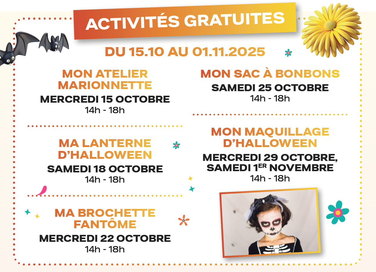Citrouilles, décorations colorées et bonbons à volonté : Halloween s’invite au Littoral Centre Allaman ! Du lundi 13 octobre au 1er novembre, participe aux d’activités gratuites, tente de gagner une croisière inoubliable ou profite de bons de réduction!